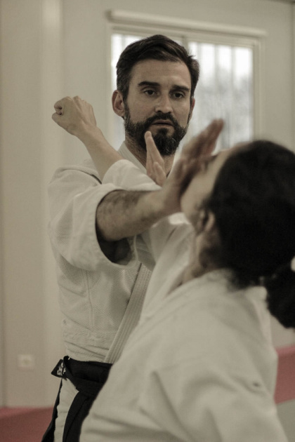 Il débute les arts martiaux à l'age de dix neuf ans. Intéressé dans un premier temps par le kung fu, c'est à l'age de 27 ans, en 2001, qu'il pousse la porte de l'Aikidojo de la roseraie à Toulouse. Dès les premiers cours, sous la direction technique de Franck Noël 7°Dan AIKIKAI, il prend rapidement conscience de la richesse de la discipline et de la qualité exceptionnelle de l'enseignement dispensé. D'une pratique de trois cours hebdomadaire au départ, il passe rapidement à une pratique quotidienne avec pour objectif d'intégrer le catalogue technique, de découvrir les principes de l'Aikido et d'affiner les sensations du travail avec partenaire. Il perfectionne sa technique lors des stages nationaux et internationaux dispensés par les experts Japonais et Francais de la discipline. Sa partipation à de nombreuses écoles des cadres lui donneront le goût de la transmission et l'envie de s'investir dans l'enseignement. Il passe le brevet d'état en 2011, débute l'enseignement au dojo de la roseraie à Toulouse, puis à Cugnaux chez Nicolessi Gaston 6°Dan AIKIKAI. Aujourd’hui 5°Dan et membre du collège technique régional, c'est avec beaucoup d'enthousiasme qu'il s'investit dans le développement de la discipline tout en continuant à pratiquer sous la direction de son senseï.